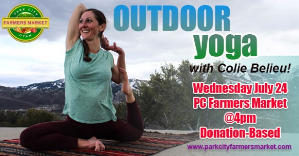 Bring your YOGA mats and please join us for an Outdoor Yoga class at the Park City Farmer’s Market this Wednesday. This week, Emily Podschweit of Yoga Kula Project will be teaching a free class for everyone at 2pm. Mark Your Calendars and Invite Your friends! ❤